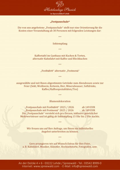 - Verschiedenste Räumlichkeiten je nach Größe der Feier in einem der schönsten Naturlandschaften Brandenburgs