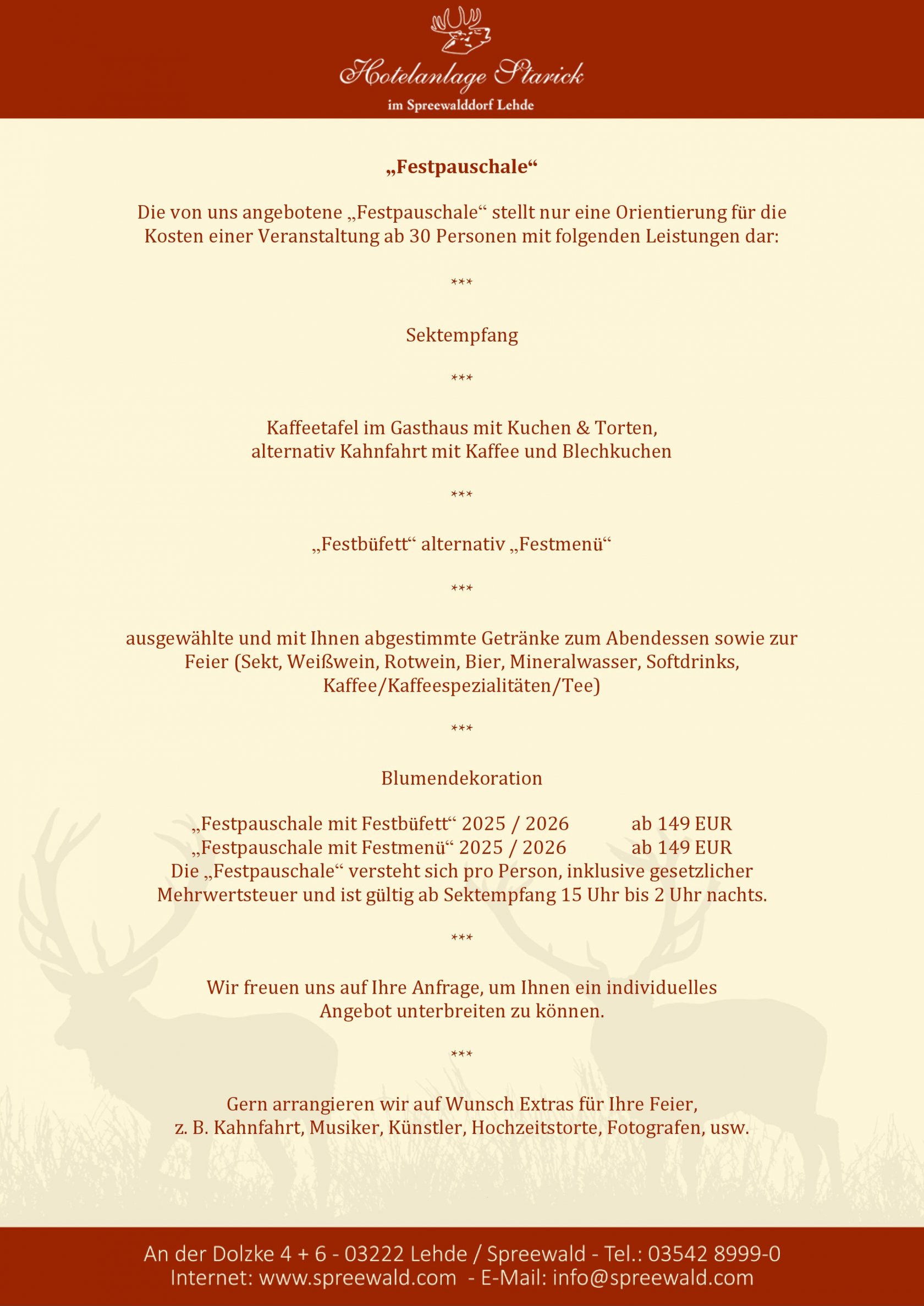 - Planung, Organisation und Umsetzung Ihrer Feierlichkeit durch das Veranstaltungsteam
