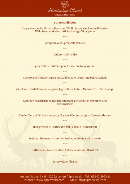 Heute begrüßen wir Sie in einem modernen Gastraum, der mit seiner eindrucksvollen Sammlung jagdbarer Tiere ein Stück Spreewaldgeschichte vermittelt. Auf unserer überdachten und beheizbaren Wasserterrasse nehmen Sie in originalen Spreewald-Holzkähnen Platz und genießen die einmalige Ruhe der Natur.