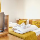Die Deluxe Doppelzimmer befinden sich in den oberen Etagen, teilweise mit Dachschräge.